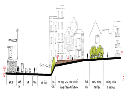 Initié en 2009 par Thierry Barbier-Mueller, la Société Privée de Gérence et l'HEPIA ont mis en place un concours d'idée visant à proposer un aménagement d'un lieu sous-valorisé. Notre trinôme, composé de deux architectes et une architecte du paysage, a imaginé une place située dans le quartier des Grottes. Sa proximité avec la gare Cornavin lui procure un statut de salle d'attente pour les voyageurs qui pourront patienter sur une plateforme en bois en admirant le Salève en arrière-plan.