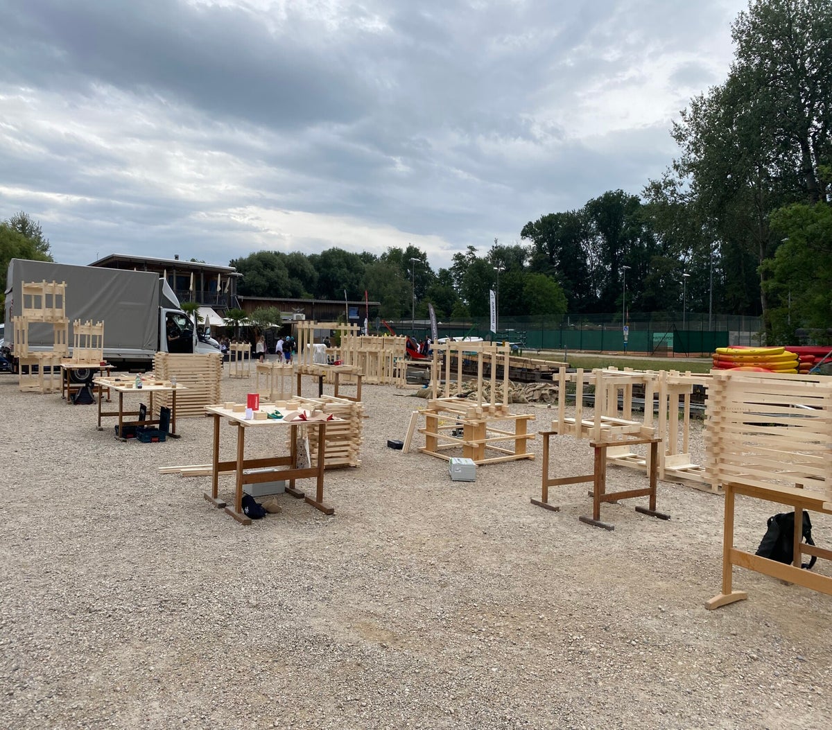 Les différents étudiants ont collaboré ensemble pour mettre en commun leurs connaissances pratiques du travail du bois et ont réussi à assembler les caissons, monter la structure et assister au concert en seulement 3 jours !