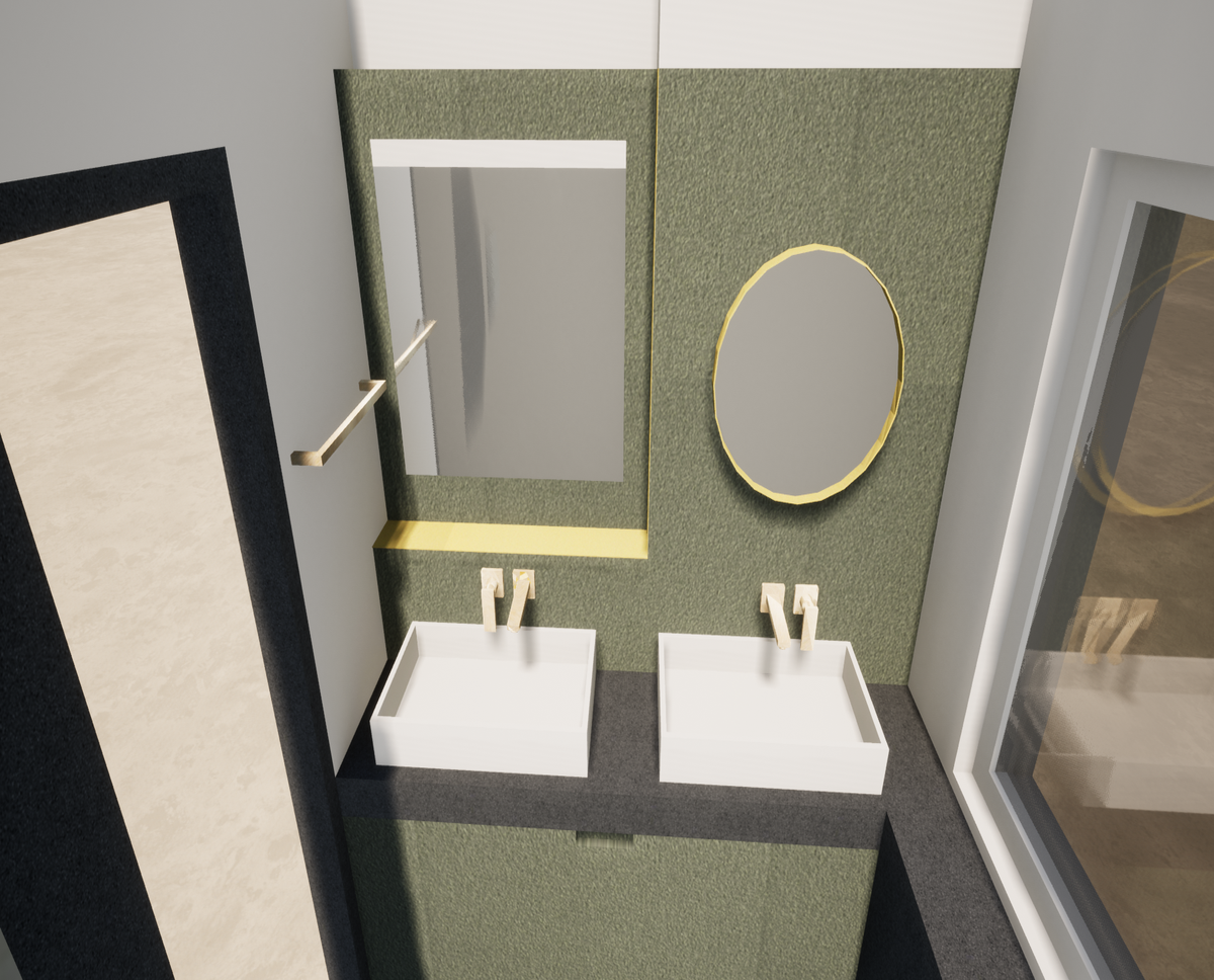 Ce projet visait la rénovation d’une salle de bain parentale haut de gamme. Nous avons travaillé avec la firme milanais Ronda Design afin de créer un jeu de texture et couleur entre les différents accessoires, appareils et revêtements.