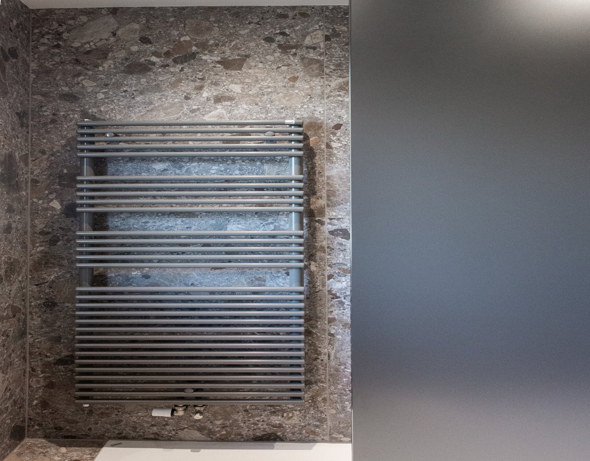 La rénovation complète de cette villa de deux étages nous a permis de réaliser cette magnifique cuisine ouverte sur la salle à manger et une spacieuse salle de bain.